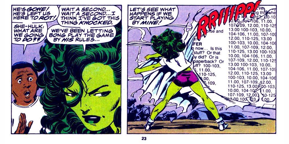 J'ai particulièrement aimé cet épisode, avec une Miss Hulk qui se balade dans les pages du comics