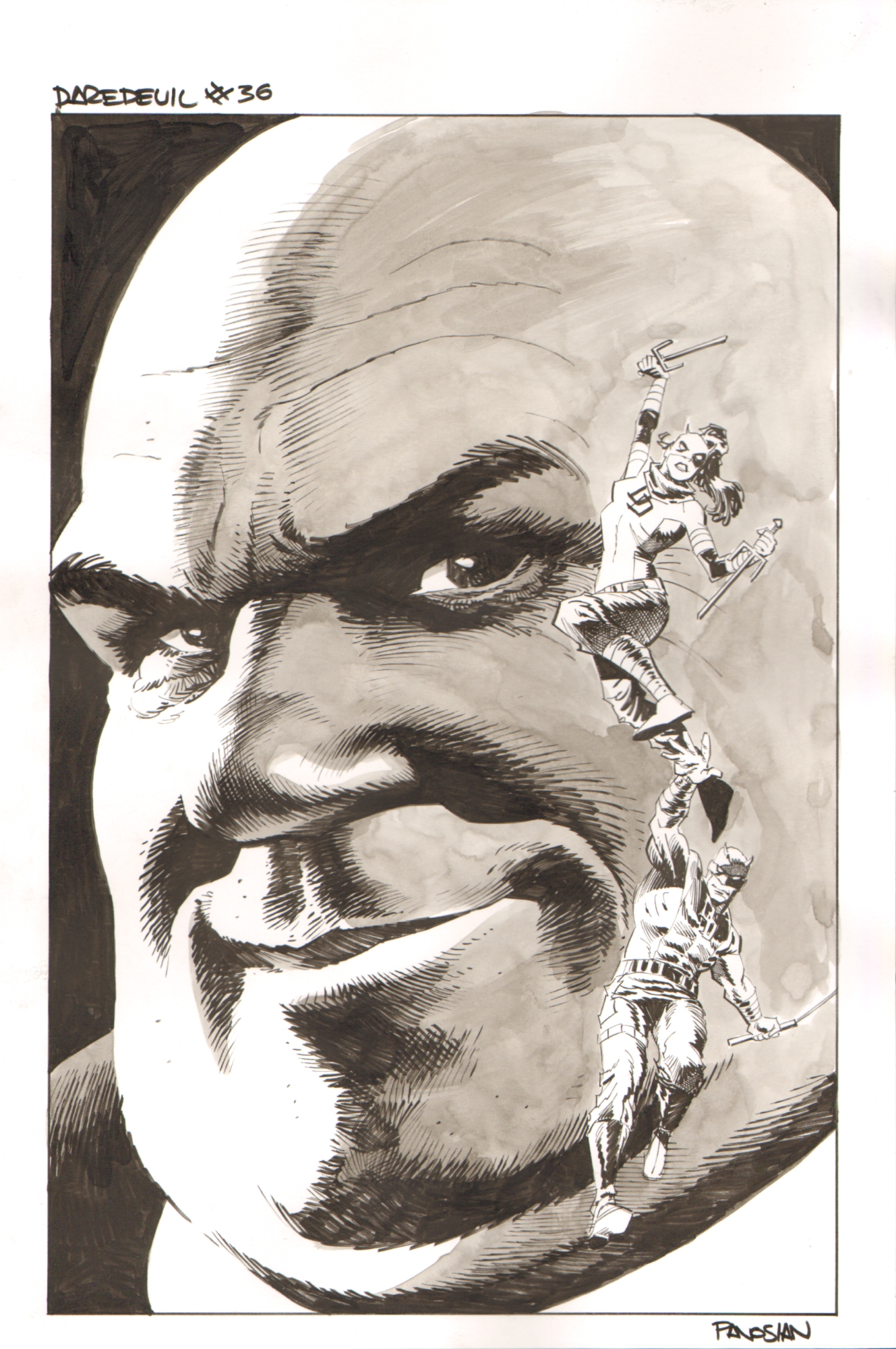 Je mets les pages (au crayon, l'encreur ayant travaillé sur blueline je pense) avec le moins de SPOILER possible mais elles montrent que le Caid/Fisk et Mary Typhoid sont ensemble
