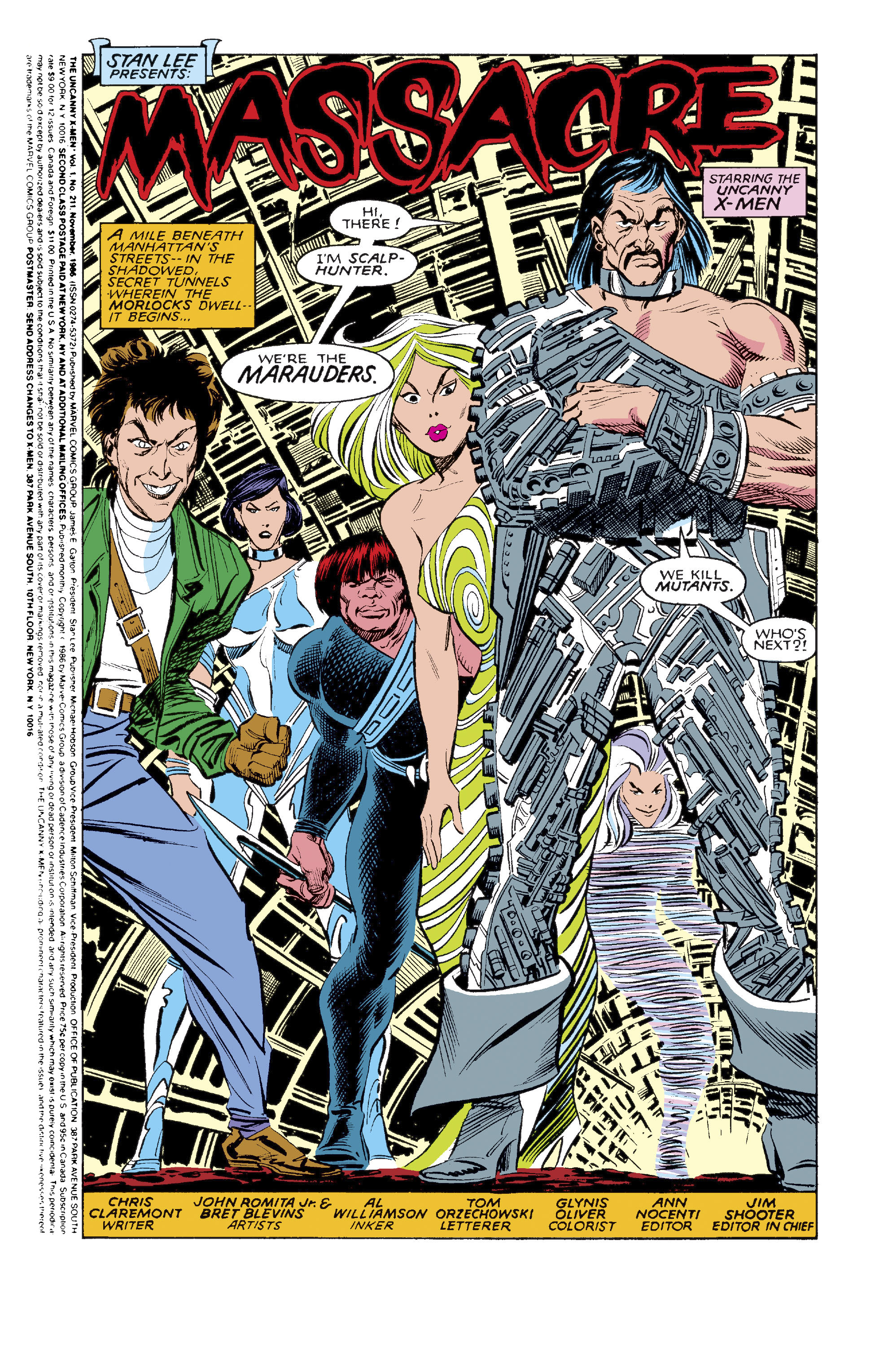 Tiens, une petite curiosité : le numéro 211 d'Uncanny X-Men, co-dessiné par JRJr et B. Blevins et encré par Al Williamson.